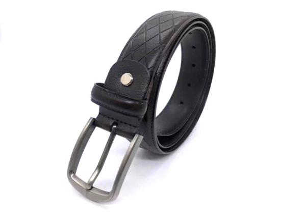 Black 35MM Embossed Mens Leather Dress Belt For Pants Images |
